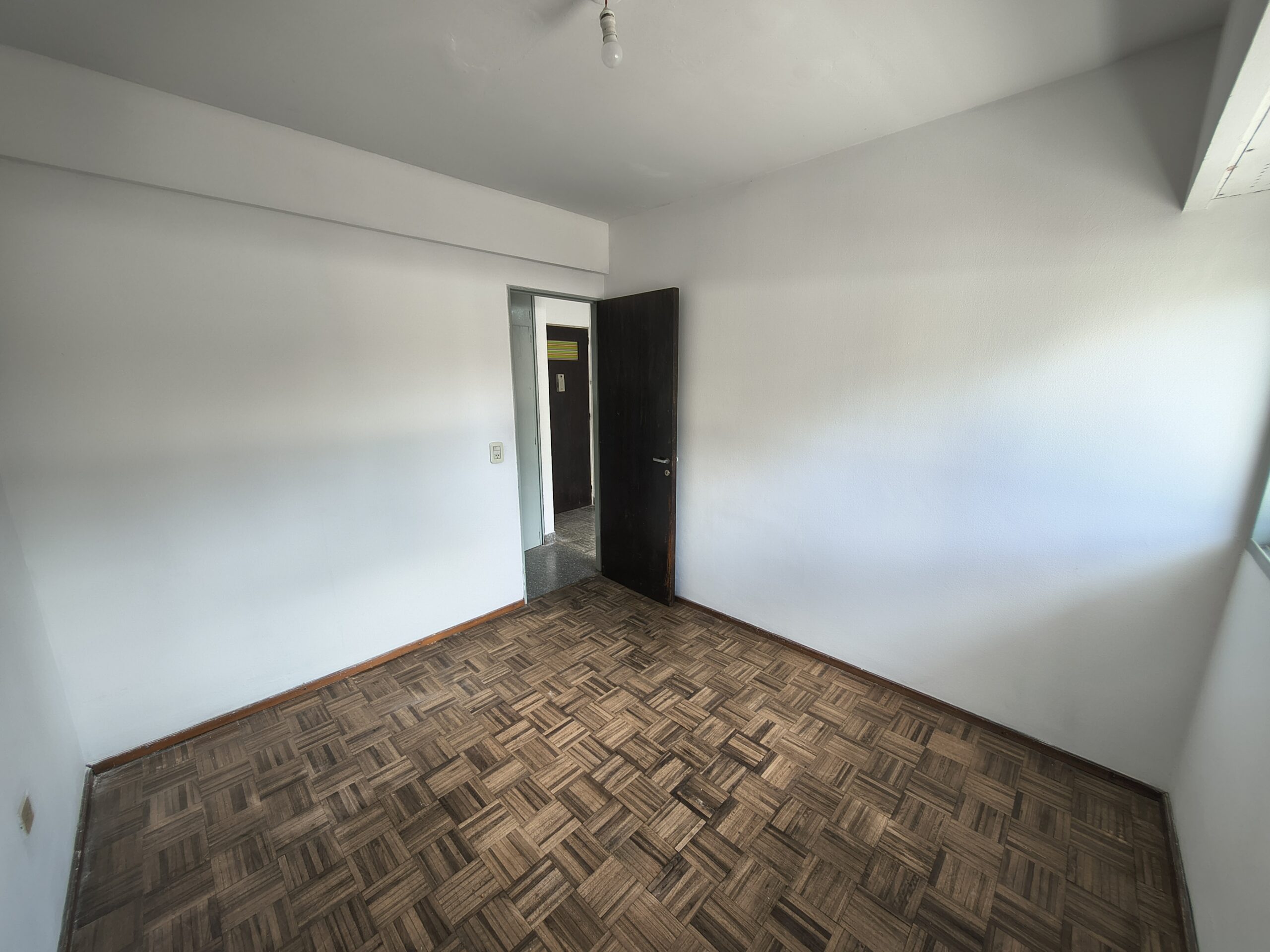 Ingreso al estar comedor (3 m x 2,81 m) con salida al balcón (3,20 m x 0,95 m). Paso íntimo con placard. Baño (1,79 m x 1,47 m). Dormitorio al frente (2,98 m x 2,74 m) con piso parquet.