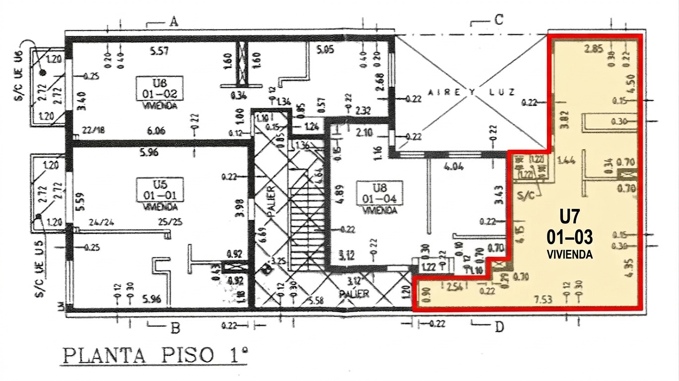 El departamento se encuentra en el primer piso con acceso por escalera.